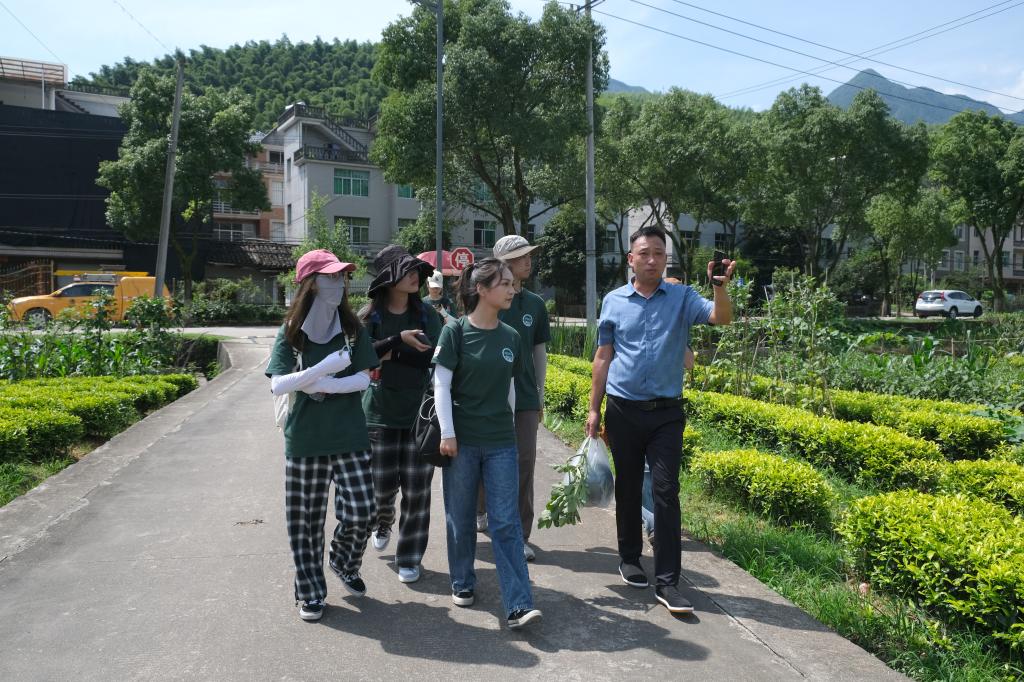 她介紹說在內(nèi)核上,鄉(xiāng)村庭院設(shè)計是農(nóng)村人居環(huán)境整治的重要一部分,是實施鄉(xiāng)村振興戰(zhàn)略的重點任務(wù),從黨的二十大報告到中央一號文件,再到習(xí)近平總書記給涉農(nóng)高校的回信,多次強調(diào)要改善農(nóng)村人居環(huán)境、發(fā)揮“人才”在強農(nóng)興農(nóng)中的重要作用;服務(wù)上,團隊從單向入駐鄉(xiāng)村服務(wù),到支部充分發(fā)揮學(xué)科優(yōu)勢,在反復(fù)實踐與傳承中形成如今黨建引領(lǐng)、庭院賦能、專業(yè)支撐的“紅色1+1+1”模式;文化上,團隊將鄉(xiāng)村庭院設(shè)計與紅色故事結(jié)合、與紅色文化共生,由表及里,促進(jìn)紅色文化的傳承。