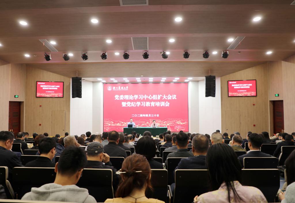 4月30日,學(xué)校召開黨委理論學(xué)習(xí)中心組擴(kuò)大會(huì)議暨黨紀(jì)學(xué)習(xí)教育培訓(xùn)會(huì),深入學(xué)習(xí)貫徹習(xí)近平總書記關(guān)于加強(qiáng)黨的紀(jì)律建設(shè)重要講話和重要指示精神,集中學(xué)習(xí)《中國(guó)共產(chǎn)黨紀(jì)律處分條例》,緊扣“六項(xiàng)紀(jì)律”進(jìn)行研討交流。校黨委理論學(xué)習(xí)中心組全體成員出席會(huì)議。