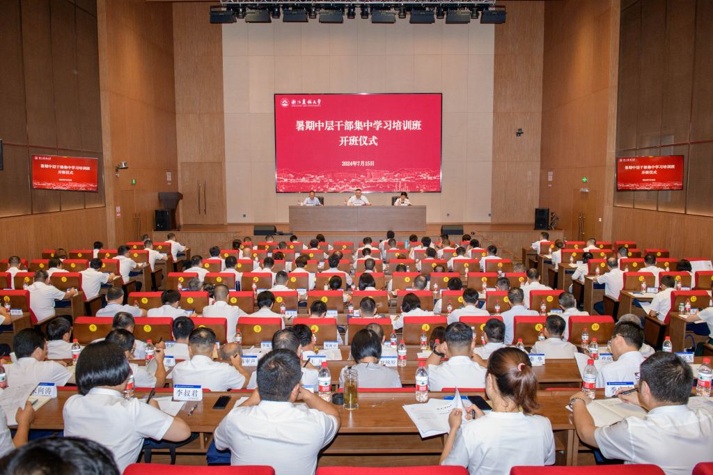 7月15-18日,浙江農林大學暑期中層干部集中學習培訓班在諸暨楓橋學院舉行。校黨委書記朱斌、校黨委副書記施美紅分別出席開班和結業儀式并講話。全體中層干部參加培訓。