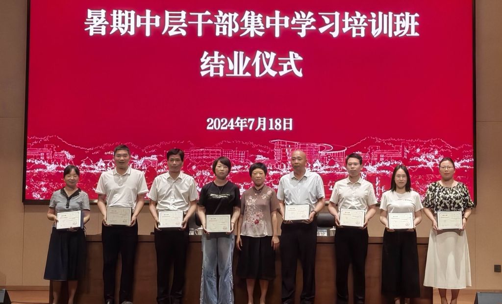 施美紅在結業儀式上指出,此次集中學習培訓將黨紀學習教育貫穿始終,課程內容安排務實精準,好學勤學樂學氛圍濃厚,展現了學校中層干部應有的素質素養、紀律風貌和愛校情懷。她要求全體中層干部以“功成必定有我”的擔當,切實把學習培訓的所思所獲所得轉化為干事創業的素質和能力。一要強化政治意識,增強政治三力,始終與黨委決策部署同頻共振、同向同行;二是強化機遇意識,增強趕超張力,推進各項工作提質增效,達到預期目標;三是強化攻堅意識,增強爭先合力,全力攻堅高水平大學和登峰學科建設;四是強化紀律意識,增強發展定力,嚴以修身、嚴以用權、嚴以律己。