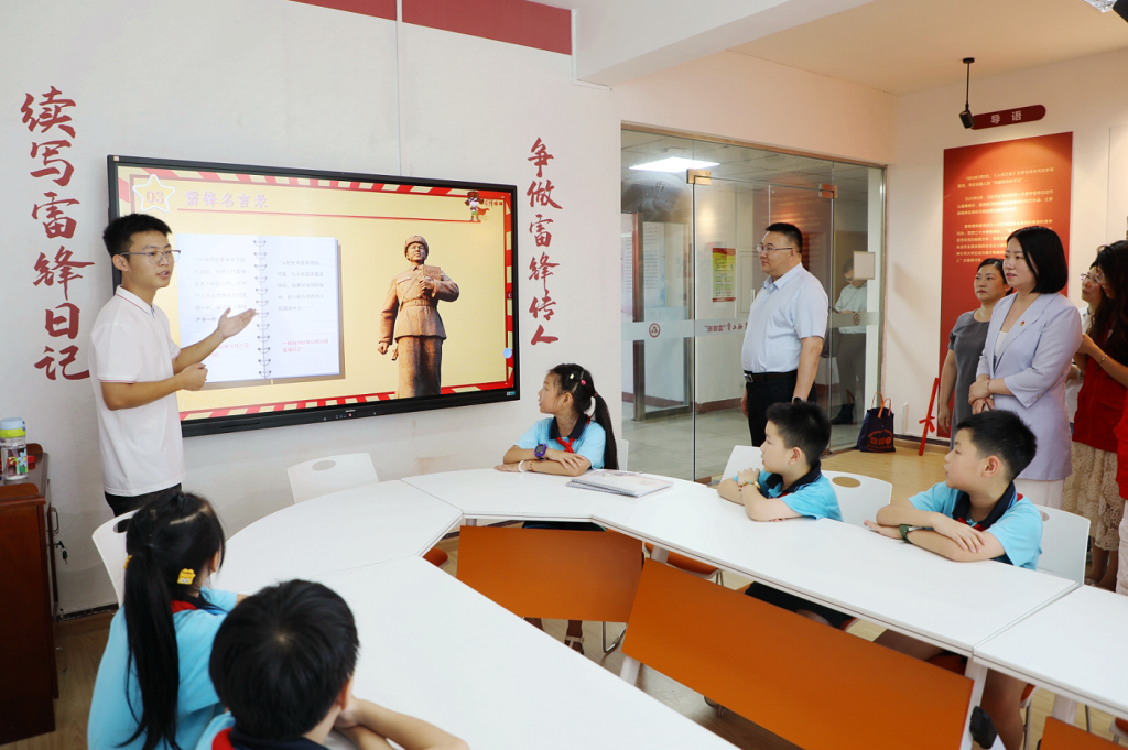 朱斌還現場觀摩了實踐團開展的志愿助學服務活動,并為實踐師生送上《習近平與大學生朋友們》和鋼筆,勉勵師生認真閱讀、用心感悟、用力書寫。