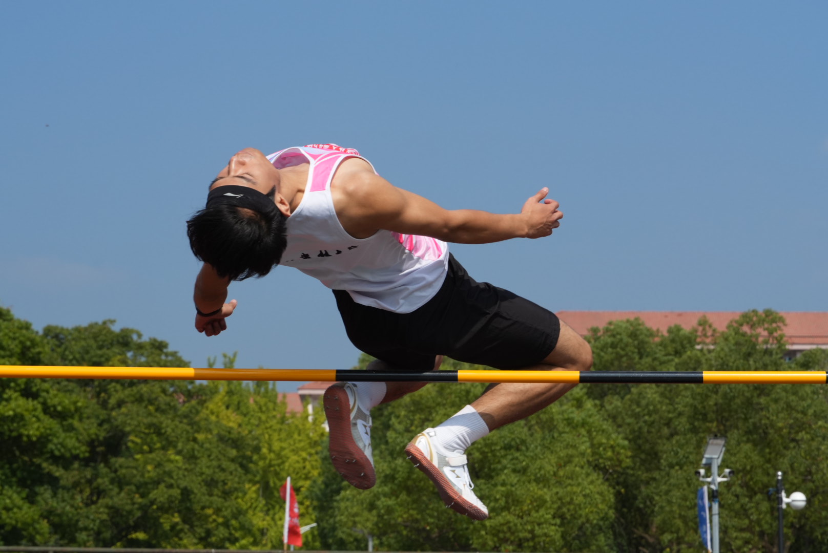 桿子一架,他們輕盈助跑,背身一跳;