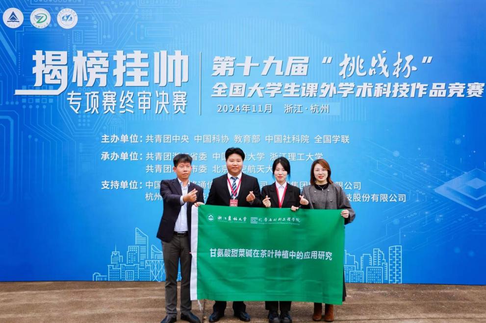 化材學院季馨雨等同學的項目《奇堿異能-復方甜菜堿植物生長營養劑的開發及其在柑橘、葡萄種植中的應用》獲擂主。化材學院葉柔汐等同學的項目《甘氨酸甜菜堿在茶葉種植中的應用研究》、竹研院畢雙博等同學的項目《“碳”索創新 “竹”夢未來—“雙C”技術協同增效竹林碳匯》、竹研院王恩福等同學的項目《“竹”夢凈化-竹炭增效空氣凈化器》獲特等獎。
