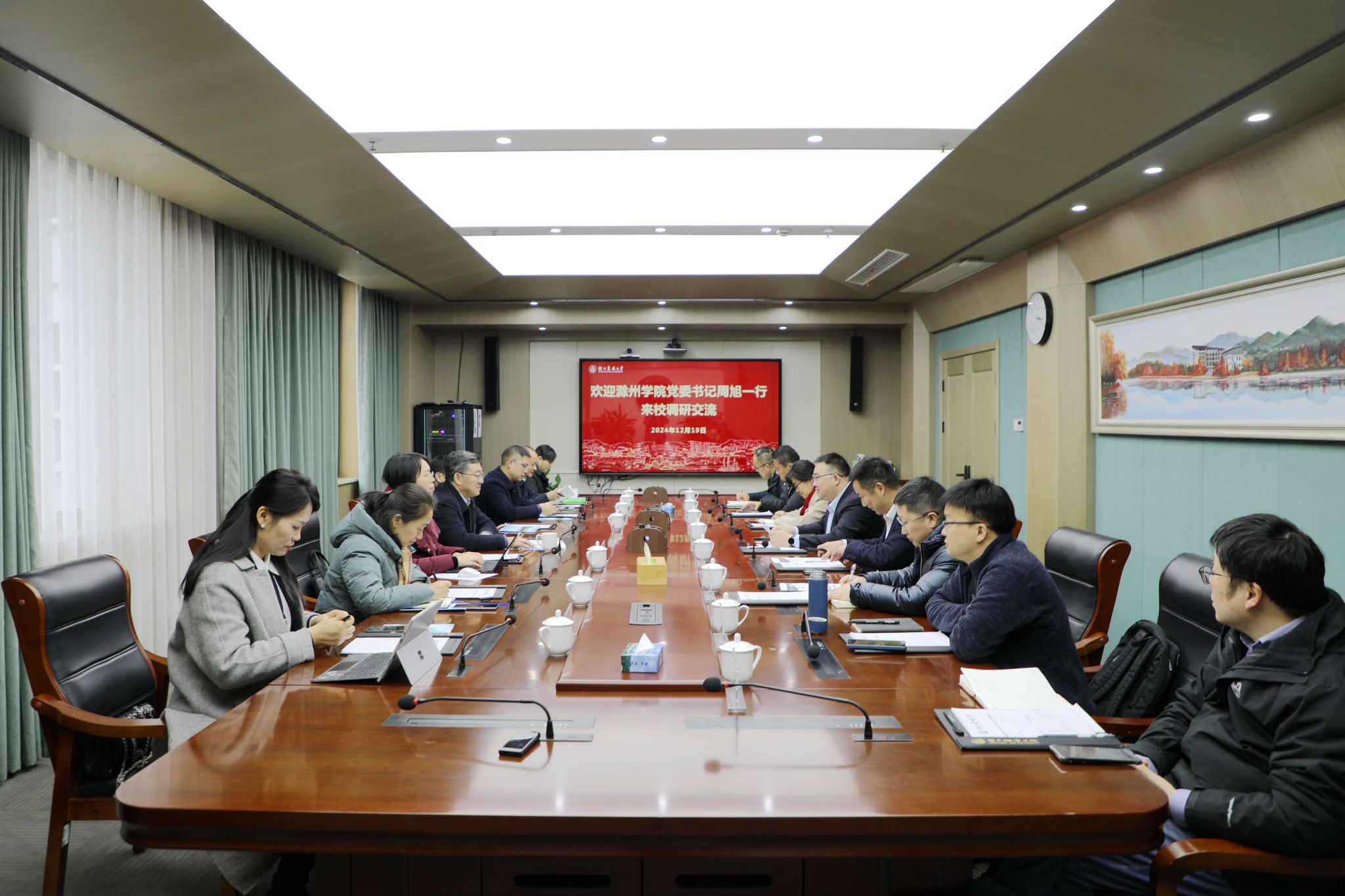 12月19日,滁州學(xué)院黨委書記周旭、副校長(zhǎng)陳桂林一行來校調(diào)研。校黨委書記朱斌、副校長(zhǎng)徐愛俊參加座談交流。