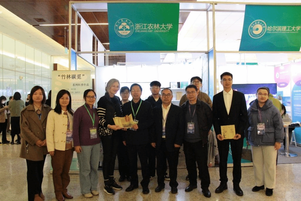 會議期間,國教學院還攜手竹子研究院、林業碳匯計量省級重點創新團隊以及杭州市臨安區文旅局積極參與世界中文大會語言展,展示我校高峰學科的優秀成果,“竹林碳覓”系列科普讀物和“以竹代塑”“以竹代木”等代表性竹加工產品,進一步提升我校國際中文教育全球知名度,助力學校爭創“雙一流”。