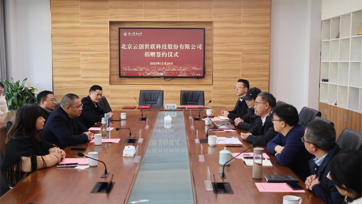 12月28日,北京云創世聯科技股份有限公司捐贈簽約儀式在學11-304舉行。北京云創世聯科技股份有限公司總經理姚欣榮一行,學校副校長、基金會副理事長胡祖吉,數計學院黨政領導班子出席儀式。