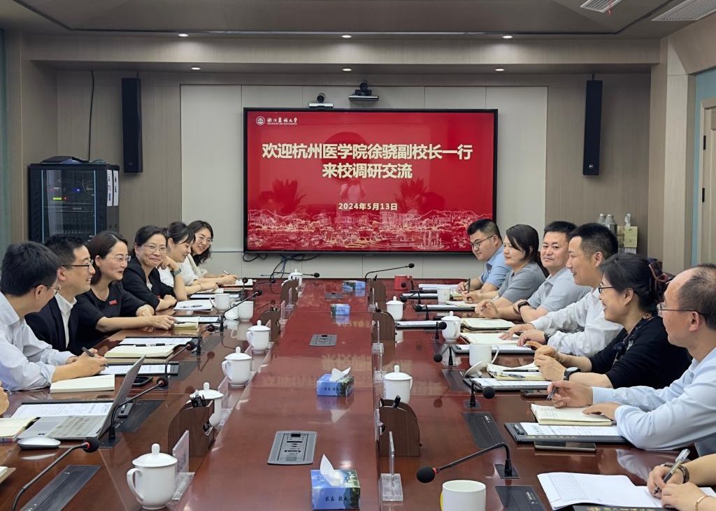5月13日,杭州醫學院副校長徐驍一行來校調研交流,副校長徐愛俊主持交流座談會。