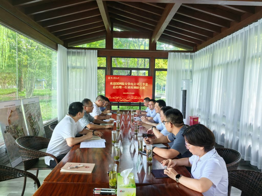 8月30日,國網臨安電力公司總經理汪李忠一行到我校調研交流學校電力擴容事宜,副校長胡祖吉參加并主持座談交流,公管處、基建處相關負責人陪同。