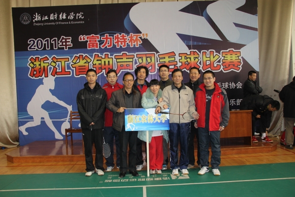 浙農林大新聞網訊 12月10日, 2011年“富力特杯”浙江省高校鐘聲羽毛球比賽在浙江財經學院舉行,全省共有18所高校教工代表隊參賽。副校長王自勇作為我校代表隊成員參加比賽,校黨委委員、校工會主席汪士華兼任我校教工羽毛球隊領隊。