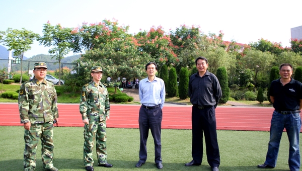 浙農林大新聞網訊 9月21日上午, 校黨委副書記、軍訓師政委宣裕方在體軍部黨總支書記、軍訓師副政委馮悅民,軍訓師副師長趙亞等陪同下,分別前往東湖校區和衣錦校區視察新生軍訓進展情況,并代表學校向全體教官致以親切的慰問。