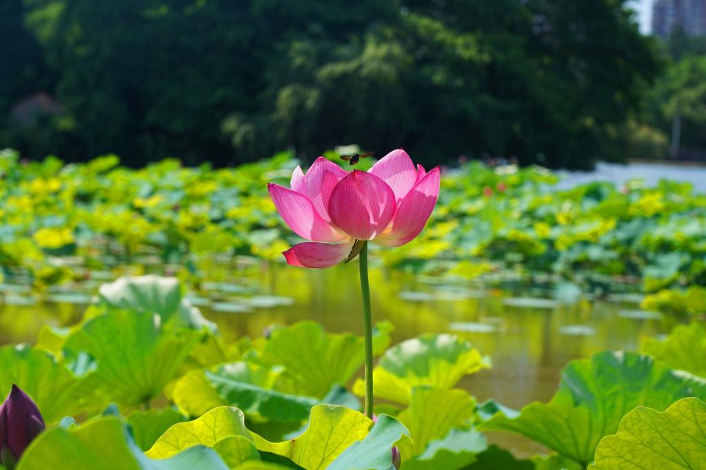 嬌妍小荷遇上低飛的蜻蜓