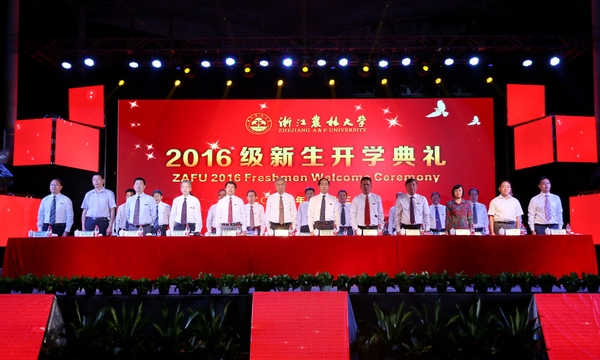 特邀嘉賓浙江經貿職業技術學院院長陳德泉、麗水職業技術學院院長梁偉樣,學校有關部門負責人,各二級學院院長、黨委(總支)書記、副書記,新生輔導員、班主任,全體2016級研究生、本科生、留學生參加了典禮。