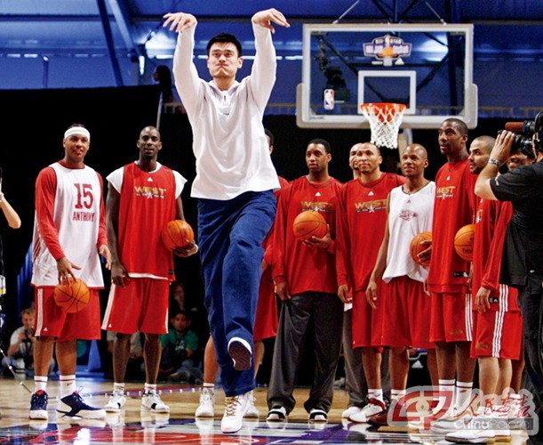 2007年2月18日,美國NBA全明星賽賽前訓練場上,入選西部明星隊的姚明亮相。姚明作為球星在NBA的賽場上展示著來自東方的魅力。姚明,不單單是一位籃球運動員,他在慈善、公益、中美文化交流等方面讓世人印象深刻,儼然成為了“中國名片”、“全球偶像”。
