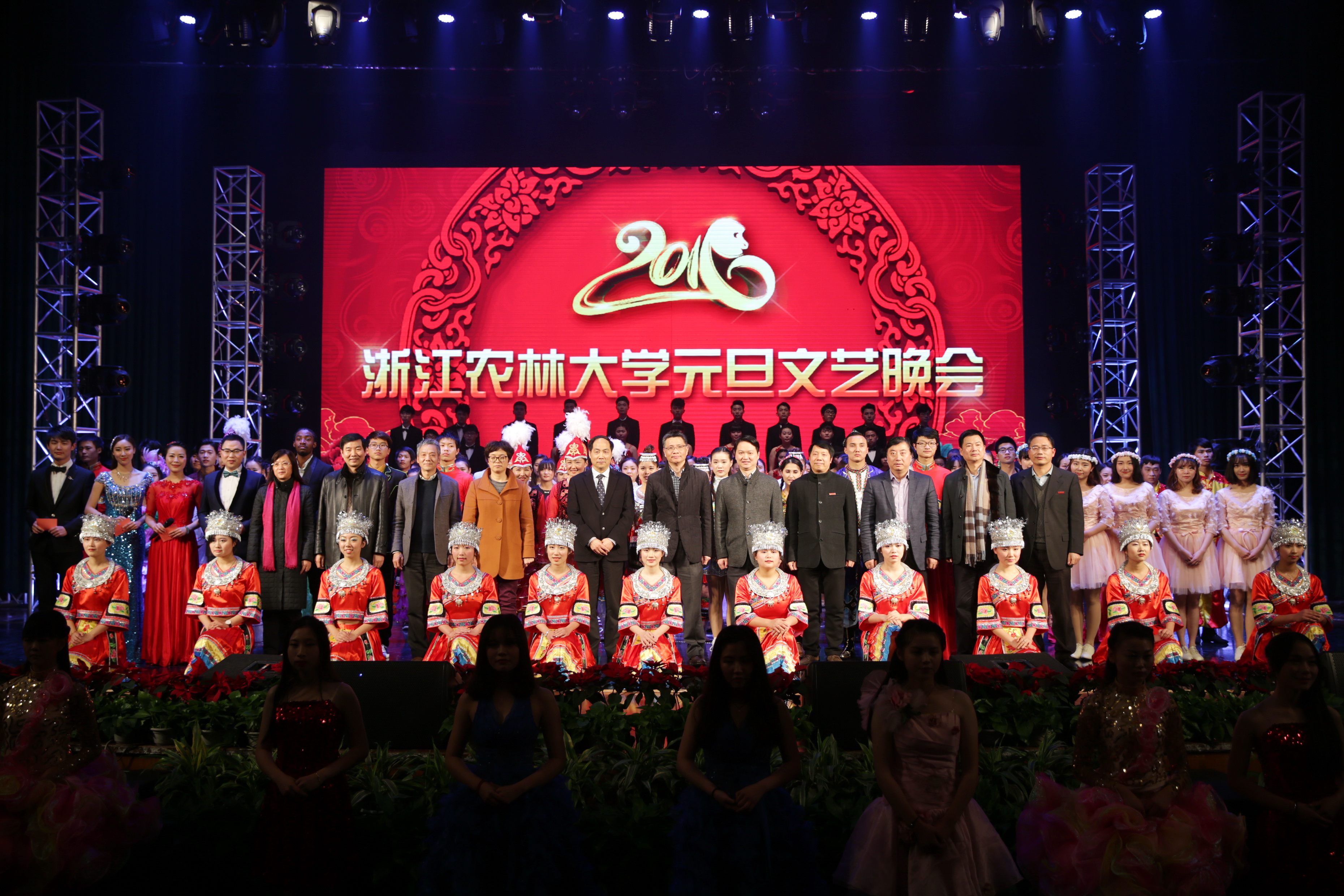 潮平岸闊催人進,風正帆舉啟新程。12月29日晚,由校黨委宣傳部、校黨委學工部、校工會和校團委共同主辦的2016年元旦文藝晚會在東湖校區活動中心影劇院隆重舉行。學校黨政班子成員宣勇、周國模、方偉、王自勇、金佩華、鐘平、沈希、沈月琴、胡祖吉,臨安市委常委、宣傳部部長黃建正,臨安市副市長裘小民,以及學校各職能部門、學院黨政負責人與千余名師生代表歡聚一堂,在歌舞聲中喜迎2016年新年元旦。