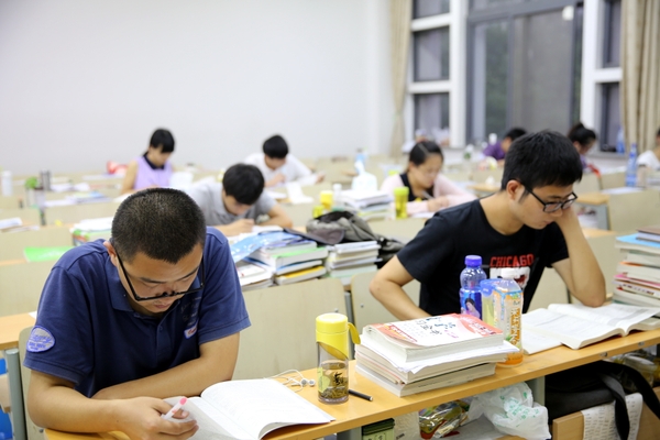 暑假期間,我校同學以各種方式歡度假期,那些選擇留校的同學們仍然在為科研、學習等忙碌著。他們利用暑假忙著學習做實驗,有的忙著準備畢業論文,有的忙著考研復習,有的則參加培訓機構做老師,他們的暑假過得很忙很充實。圖為工程學院一位同學在考研教室的黑板上寫下“多學一點 離成功更近一點”,以激勵自己。