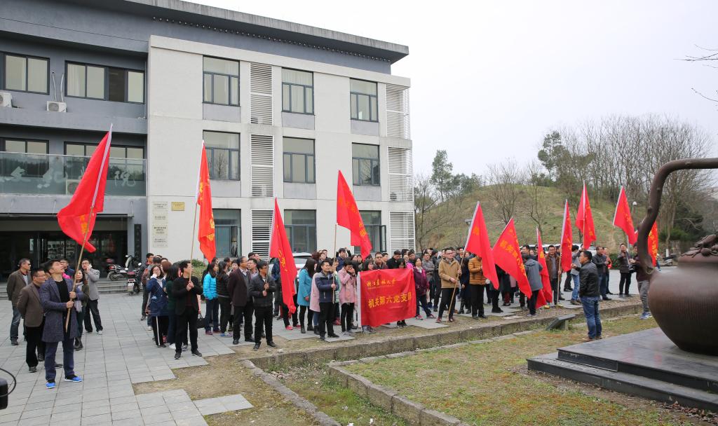 校黨政領導班子成員周國模、方偉、王自勇、鐘平、胡祖吉、童曉暉等與師生代表一起,在東湖校區茗茶園西側區域添種一片新綠。大家揮鍬鏟土,扶苗填坑,踏土夯苗……三五人一組團結協作、滿懷熱情,不到2小時,一萬多株茶樹、50多株福建山櫻花等成排而立。