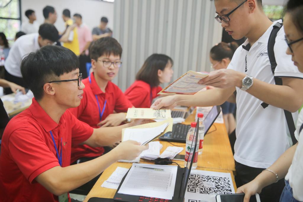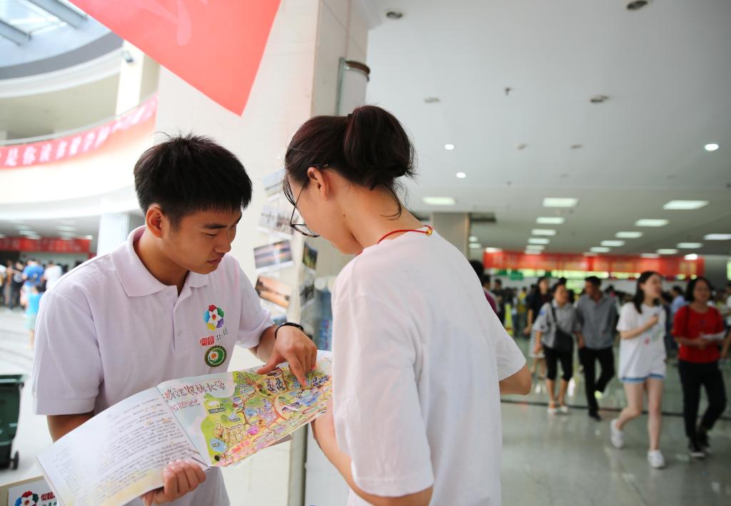 在迎新報到期間,志愿者們為新生提供報到引導、校園介紹、答疑問詢等志愿服務,為同學辦理報到和入學手續等各種問題提供指引;學生記者用攝像機、照相機為你們留下入學時的笑臉和期待,為你們記錄下上大學第一天的精彩與美麗。