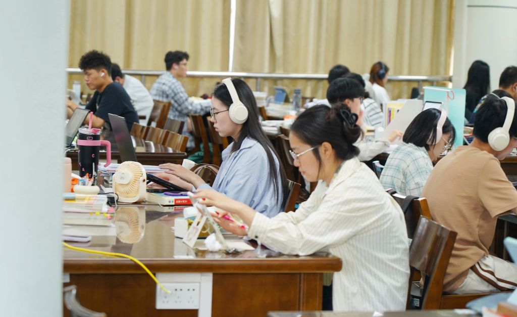 這段時間,浙江農林大學的學生在學校圖書館里看書學習,為考研考公作準備。據悉,暑假期間,浙江農林大學圖書館空調開放,不少學生選擇了留校在圖書館里學習,為考研考公作準備,環境優良的圖書館等場所也成為學生暑期學習、閱讀、避暑的好場所。