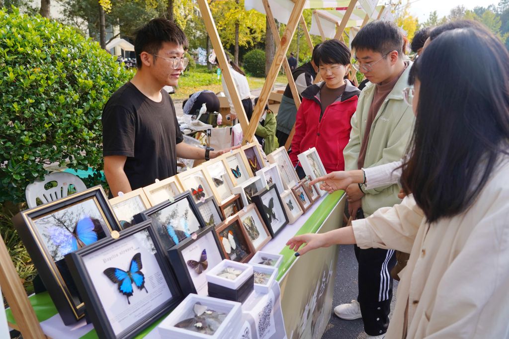 立體人造生態系統、昆蟲標本展、寵物義診、多肉養殖展示、玉米手作工藝品、鄉村景觀VR自行車、火山爆發小實驗……一天的時間里,校園處處都是生態課堂。花車巡游、農林IP&漢服秀、生態時裝秀、生態市集等一系列形式活潑、集趣味性與教育性為一體的生態主題活動,吸引了數萬名師生及市民。7大版塊的166個生態主題展位,以及生態巡游、生態研學、生態閃拍等系列嘉年華活動,給參與者浸潤式體驗。通過生態+生物、科創、文創、美育、循環、美食、產業等板塊的市集活動,引導師生學習生態知識、踐行生態行為、傳播生態文明理念。