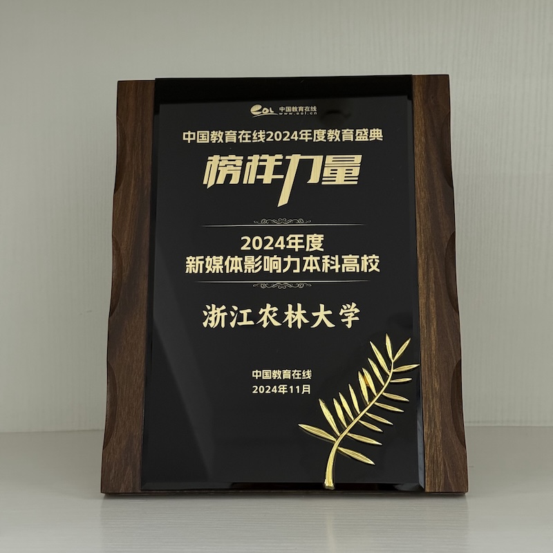 近日,中國教育在線“榜樣力量·2024年度教育盛典”優(yōu)秀案例公布。浙江農(nóng)林大學(xué)憑借在新媒體領(lǐng)域的卓越成就與深遠影響力,榮獲“2024年度新媒體影響力本科高校”。