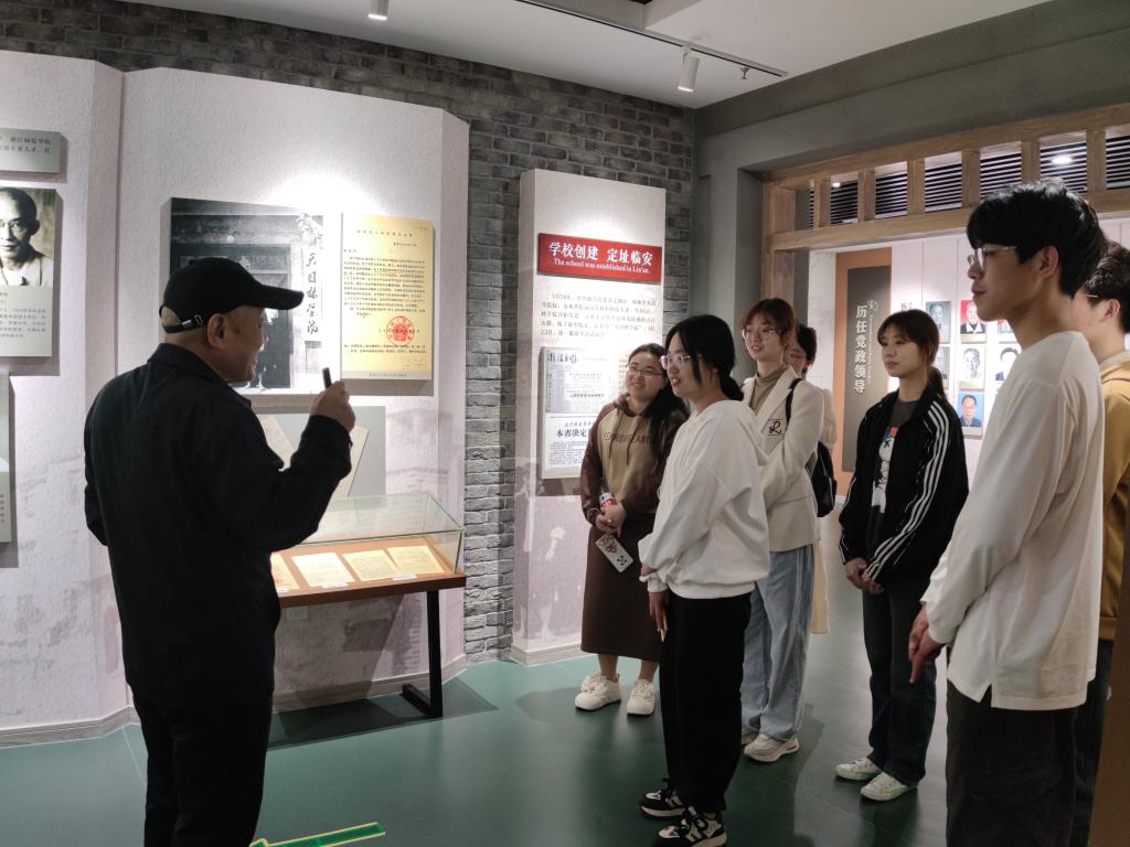 在校史館,胡建平老師為同學們帶來了生動的校史講解。他深入闡述了“求真敬業”的校訓內涵,介紹了眾多杰出校友的奮斗故事、優秀教師的教育貢獻,以及學??萍贾r的顯著成果,生動展現了學校的精神文化。胡老師說:“浙江農林大學是一個讀書做學問的好地方,不僅在于風景,更在于學校的優秀文化、辦學理念。”校史館是學校歷史的見證者,也是校園文化建設的重要組成部分。同學們觀看館內陳列的文物、圖片和資料,聆聽背后學校創立以來篳路藍縷、艱苦奮斗的輝煌歷程,深刻感受到作為浙農林大學子的自豪與責任。