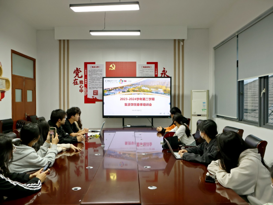 4月21日晚,集賢學院學生會2023-2024學年春季培訓會在學1-412召開,學生會主席團成員、學生會各部門負責人參加會議。