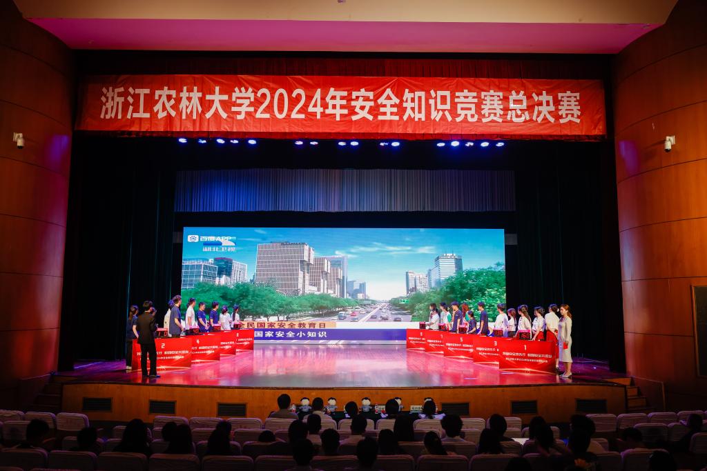 5月10日晚,由學工部、研工部、保衛處、校團委聯合主辦,數計學院承辦的浙江農林大學2024年安全知識競賽總決賽在東湖校區影劇院舉行。校黨委委員,黨委宣傳部部長、黨委教師工作部部長倪建均出席活動,學校主辦部門負責人、二級學院學生工作負責人、輔導員和學生代表500余人參加。數學與計算機科學學院常務副院長馮海林致辭并宣布決賽開始。