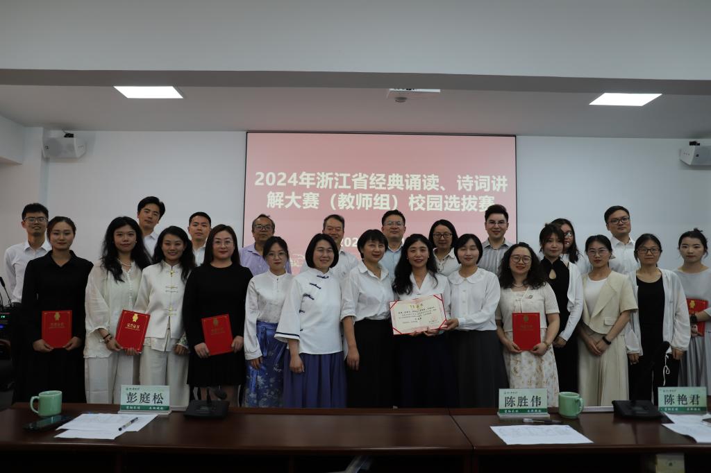 5月16日,為助力強化國家通用語言文字推廣,助力深化“典耀中華”主題讀書活動開展,校黨委宣傳部、校教師教學發展中心、文法學院聯合主辦的“浙江農林大學中華經典誦讀與詩詞講解大賽(教師組)”在衣錦校區舉行,校新聞中心主任陳勝偉,文法學院黨委書記朱紅東、副院長陳艷君,校寫作中心主任彭庭松,馬院教師包林帆擔任評委。