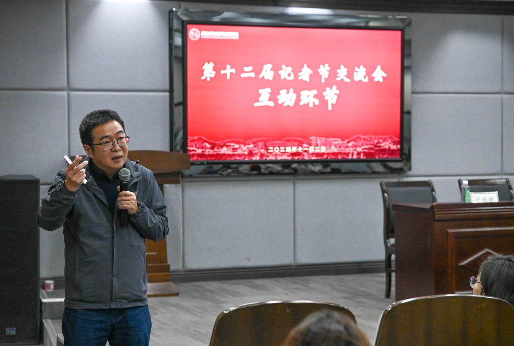 校新聞中心主任陳勝偉致開幕詞,對全校師生通訊員、學生記者致以記者節的慰問與祝福。他希望大家不斷增強腳力、眼力、腦力和筆力,以實際行動提升學校新聞輿論的傳播力、引導力、影響力、公信力,努力講好農林故事、發出農林好聲音,為學校推進林學登峰學科和高水平大學建設貢獻新聞力量。
