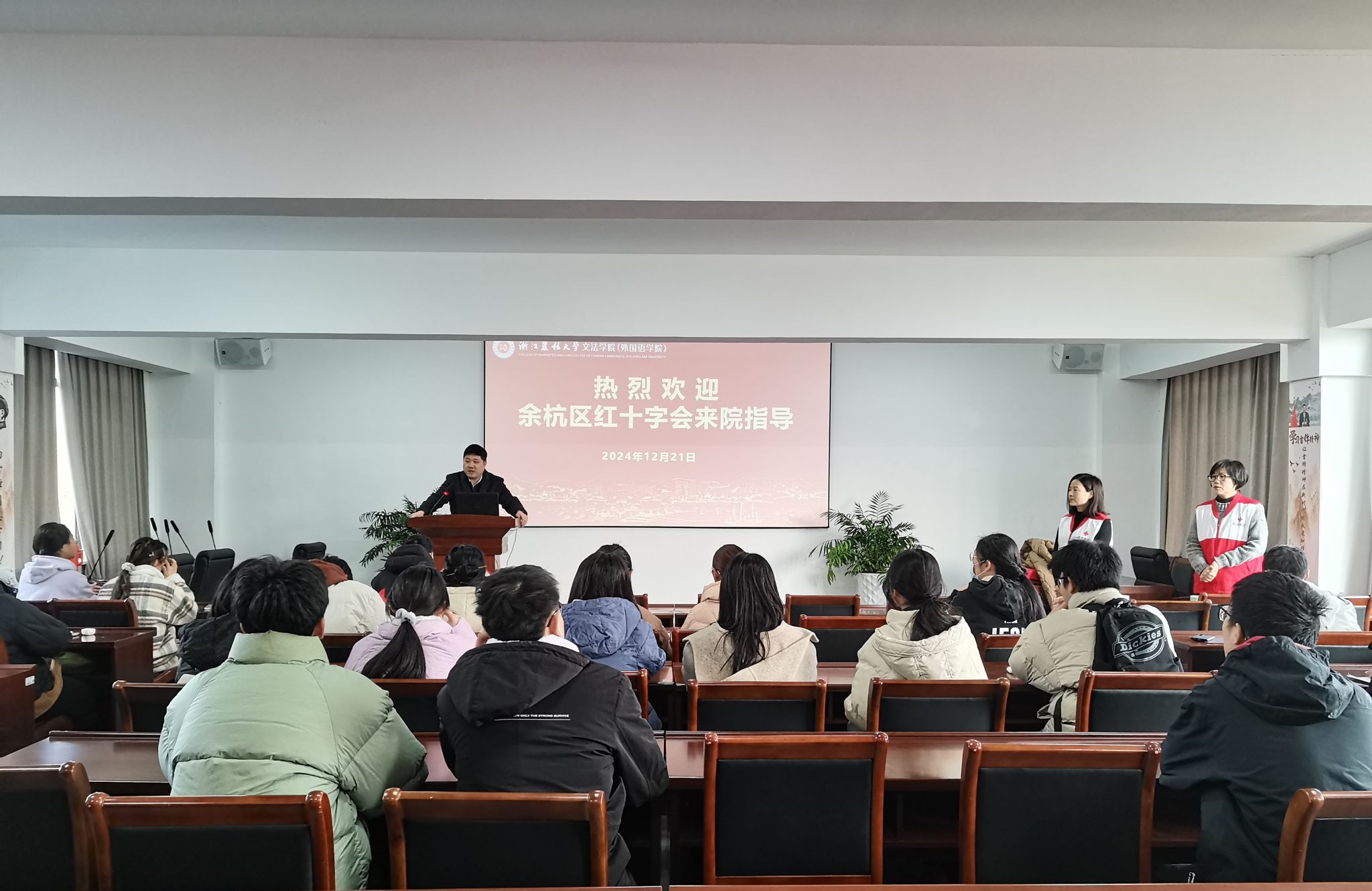12月21日,文法學院工會、婦聯聯合杭州市余杭區紅十字會、杭州師范大學開展“急救訓練營”活動公益急救培訓,文法學院34名師生參加并成功申獲紅十字救護員證。