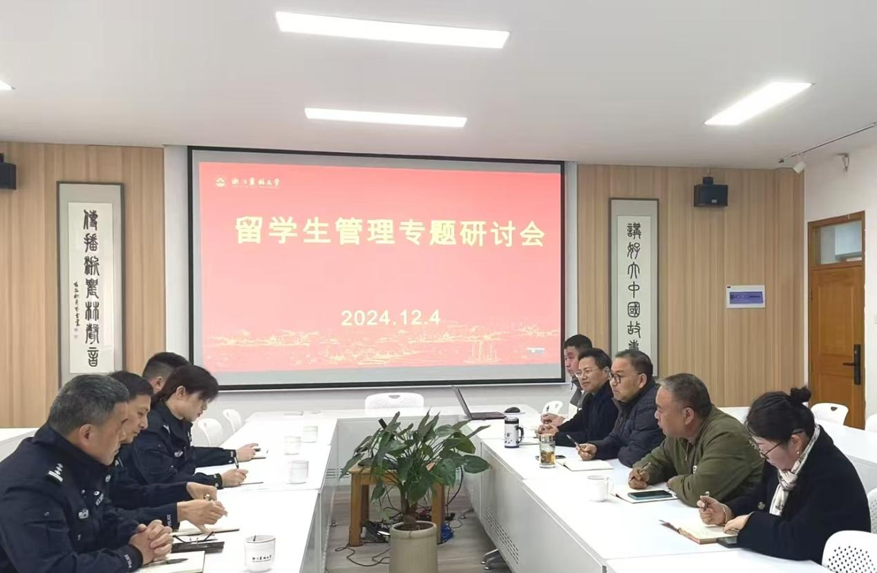 12月4日,國教學院、校安全保衛部與杭州市公安局臨安區分局出入境管理科、錦北派出所聯合召開留學生管理專題研討會。會議由院長趙有華主持,學院相關負責人、校安保部干事、全體輔導員和招生管理老師參加會議。