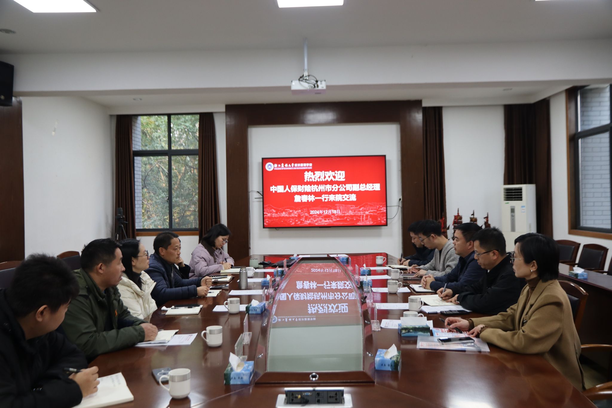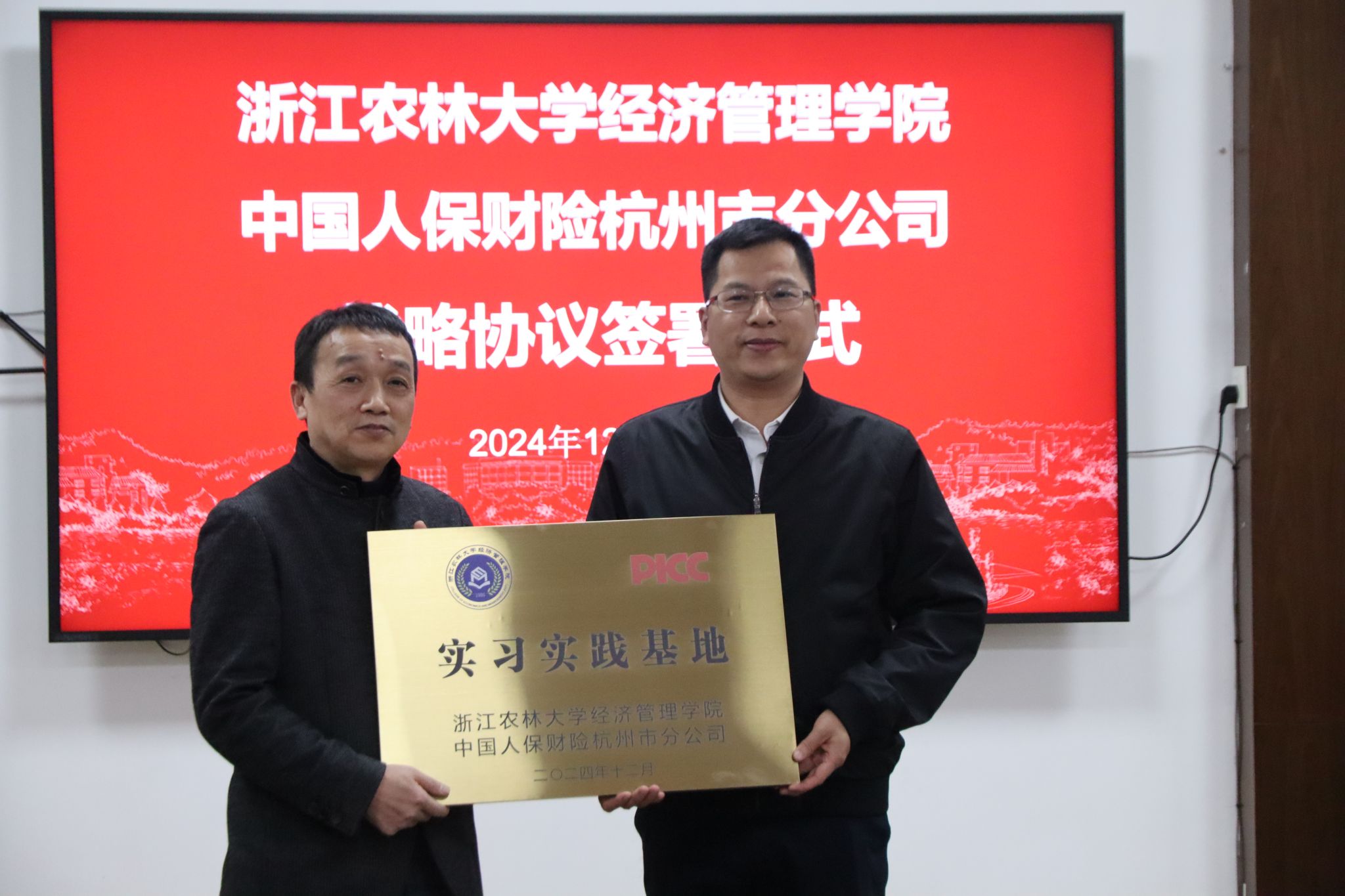 12月18日下午,經(jīng)管學(xué)院與中國人保財險杭州市分公司戰(zhàn)略合作協(xié)議簽約暨實(shí)習(xí)實(shí)踐基地授牌儀式在西大樓208會議室舉行。中國人保財險杭州市分公司副總經(jīng)理詹春林、經(jīng)管學(xué)院黨委書記陳勁松,雙方團(tuán)委、行政人事以及學(xué)生辦等相關(guān)人員參加了儀式。