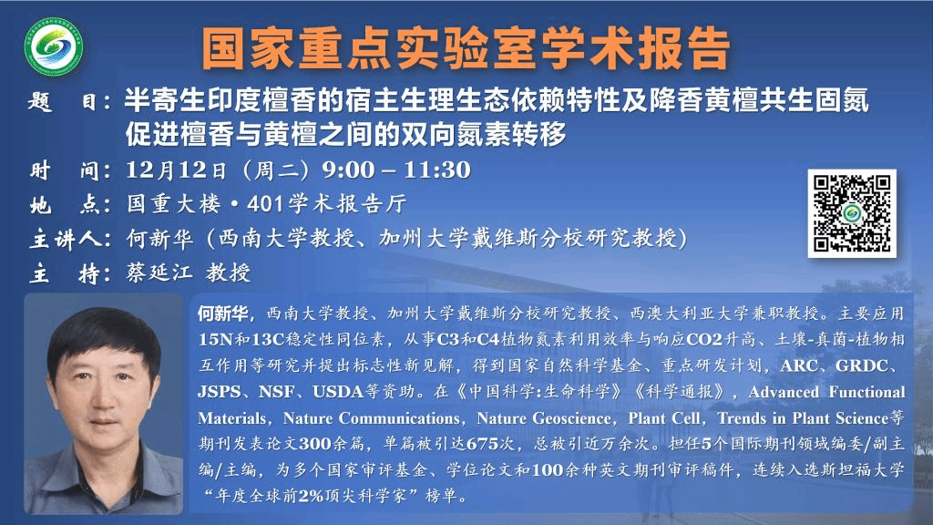 講座預告:半寄生印度檀香的宿主生理生態依賴特性及降香黃檀共生固氮促進檀香與黃檀之間的雙向氮素轉移