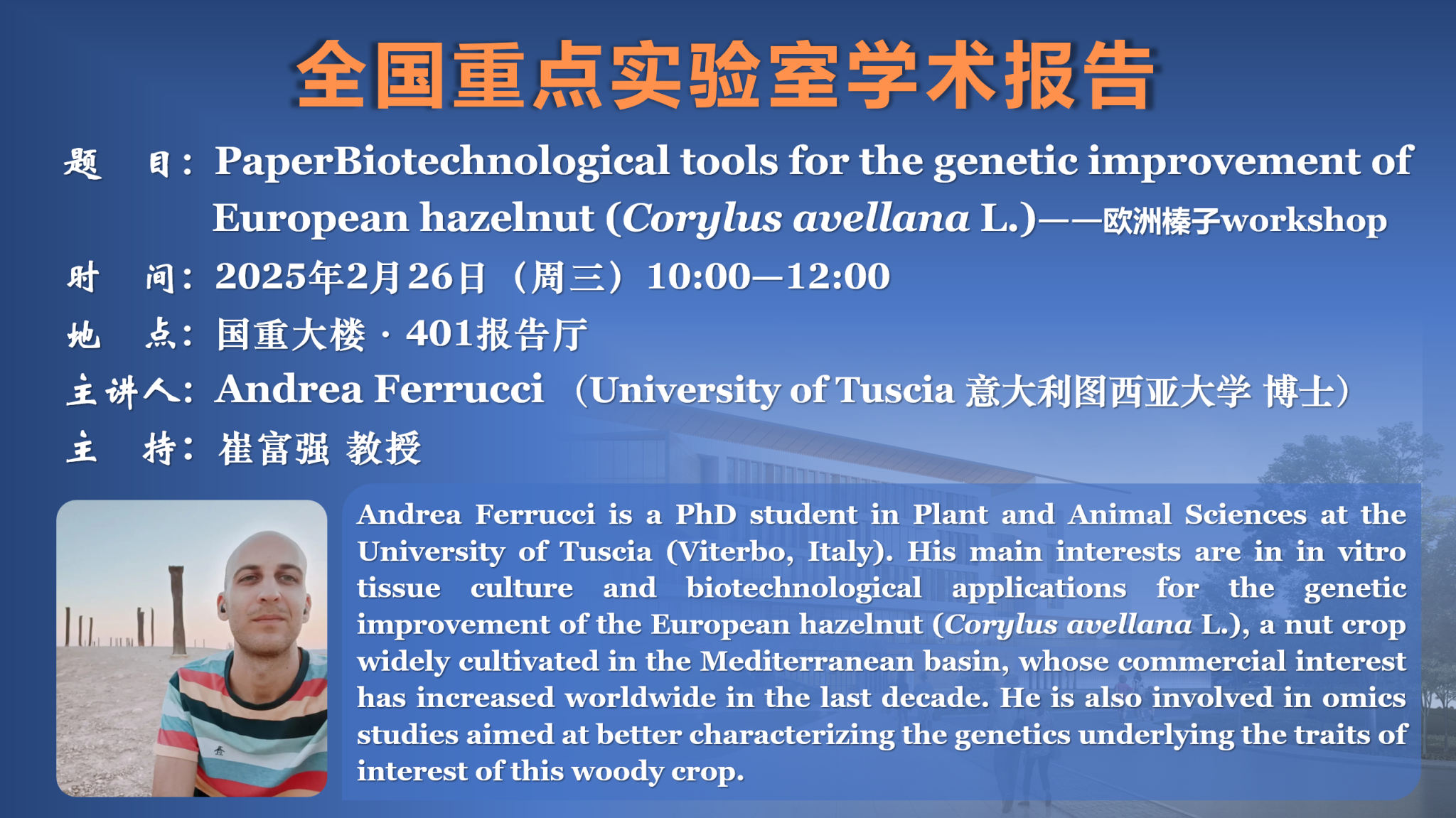 講座預告:Biotechnological tools for the genetic improvement of European hazelnut (Corylus avellana L.)