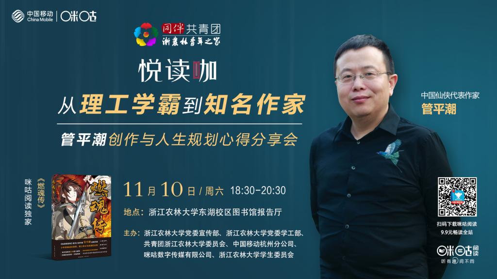講座主題:《從理工學霸到知名作家——管平潮創作與人生規劃心得分享》