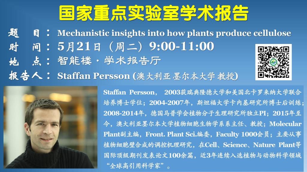 國家重點實驗室講座:Mechanistic insights into how plants produce cellulose
