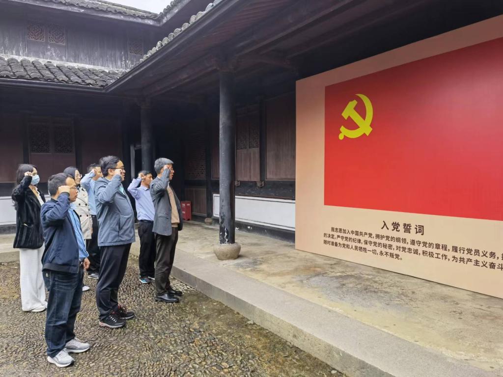 學院一行還到浙東(四明山)革命根據地紀念館參觀學習,詳細了解1941年至1945年間浙東抗日根據地堅持敵后抗戰的故事,銘記光輝歷史,傳承紅色基因,賡續紅色血脈。全體黨員在黨旗下重溫了入黨誓詞。