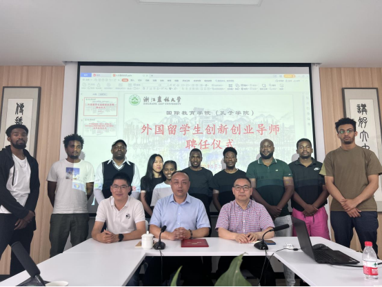 國教學院聘任雷曉俊為我校外國留學生創新創業導師,加強校企合作,努力為中國-埃塞俄比亞竹子資源綜合開發利用項目培養一批創新型職業技術人才,為國家“一帶一路”倡議貢獻農林智慧。國際教育學院(孔子學院)院長趙有華表示,學校積極落實中非合作論壇第八屆部長級會議行動計劃,選派學校竹業科研專家團隊走進埃塞俄比亞,開發“中文+職業技術”培訓項目,助力中非竹子中心建設,爭取合作實施竹藤國際合作示范項目。來自埃塞俄比亞、贊比亞、剛果(金)、越南等國的國際生代表參加了聘任儀式。