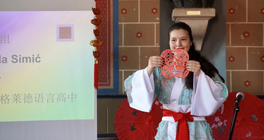經(jīng)過激烈角逐,來自貝爾格萊德語言高中的希希(Nada Simi?)摘取了高級(jí)組桂冠,將代表塞爾維亞參加“漢語橋”世界中學(xué)生中文比賽總決賽。來自卡爾洛夫茨語言高中的凱瑟琳(Katarina Zindovic)奪得初級(jí)組冠軍。