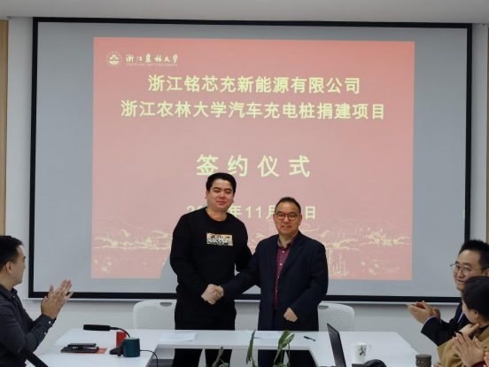 本次捐建的汽車充電樁由浙江銘芯充新能源有限公司通過國教學院向學校提供,填補了學校校內設置汽車充電樁的空白,對我校低碳校園的建設具有十分重要的意義。