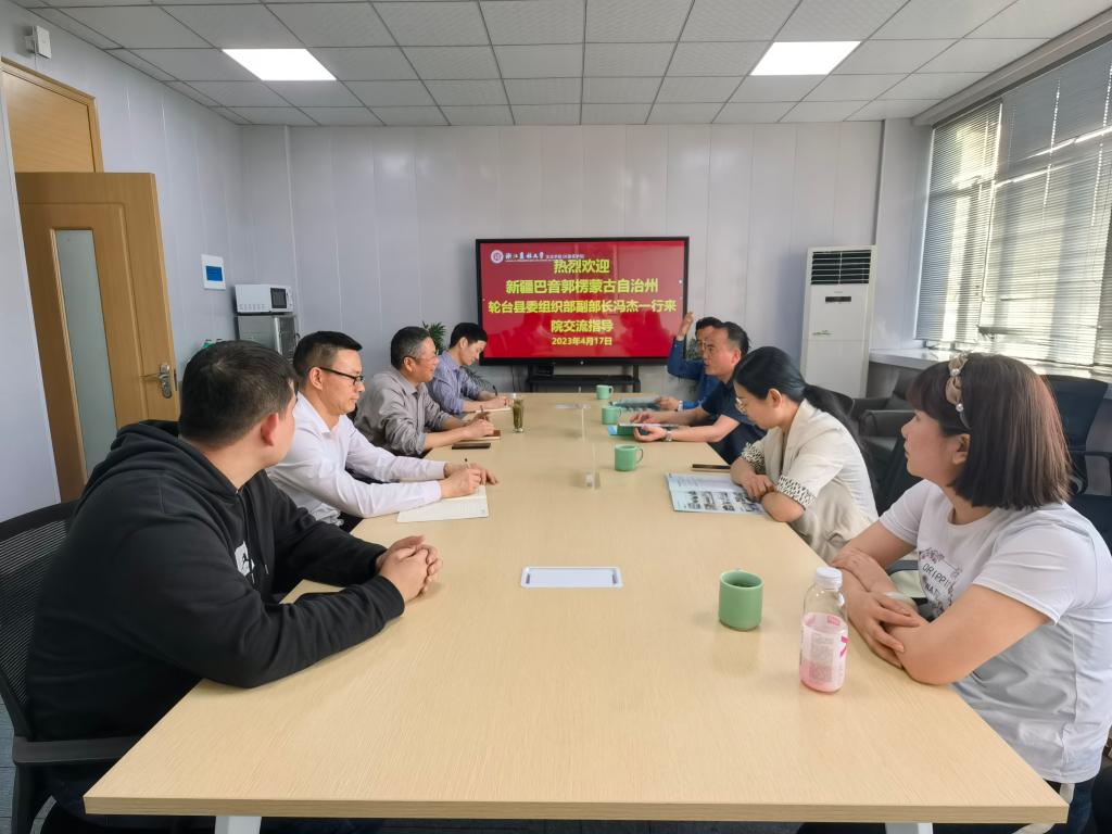 4月17日,新疆巴音郭楞蒙古自治州輪臺縣縣委組織副部長馮杰一行4人到文法學院交流合作,學院院長魯可榮及相關負責人參加交流座談。
