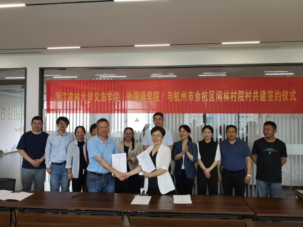5月26日,文法學院院長魯可榮帶隊赴余杭區閑林村開展院村共建簽約儀式,文法學院相關負責人,學生辦、新聞傳播學科、公共管理學科相關負責人參加了此次活動。