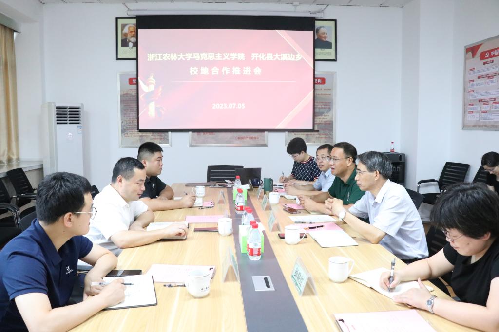 會上,雙方圍繞校地合作中心任務開展座談交流,協商黨建聯建、業務聯合、人才共育的合作模式。學院院長高君表示,開化縣大溪邊鄉山美水美,有著豐富的自然資源。雙方表示,希望圍繞高校服務鄉村振興促進共同富裕的目標定位,發揮高校學科優勢,通過開展理論宣講、干部培訓、項目調研、文化提升、教學實踐等活動,實現資源共享、優勢互補、產教融合,切實推進校地合作工作,服務地方社會經濟文化建設。