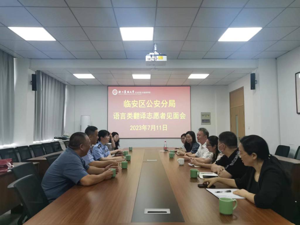 會上,學院組織語言翻譯志愿者教師與臨安區公安分局的有關人員,就服務杭州亞運臨安賽區翻譯服務的具體事項進行了深入交流。