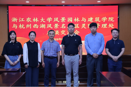 丁水龍介紹了靈隱管理處的整體概況、特色優勢。陳審聲介紹了學院整體情況,并表示雙方在西湖-靈隱-飛來峰文化景觀、植物新品種培育、病蟲害防治及應用推廣等方面契合度高。雙方今后將在人才培養、研學合作、社會實踐、基地建設等方面進一步加強合作。