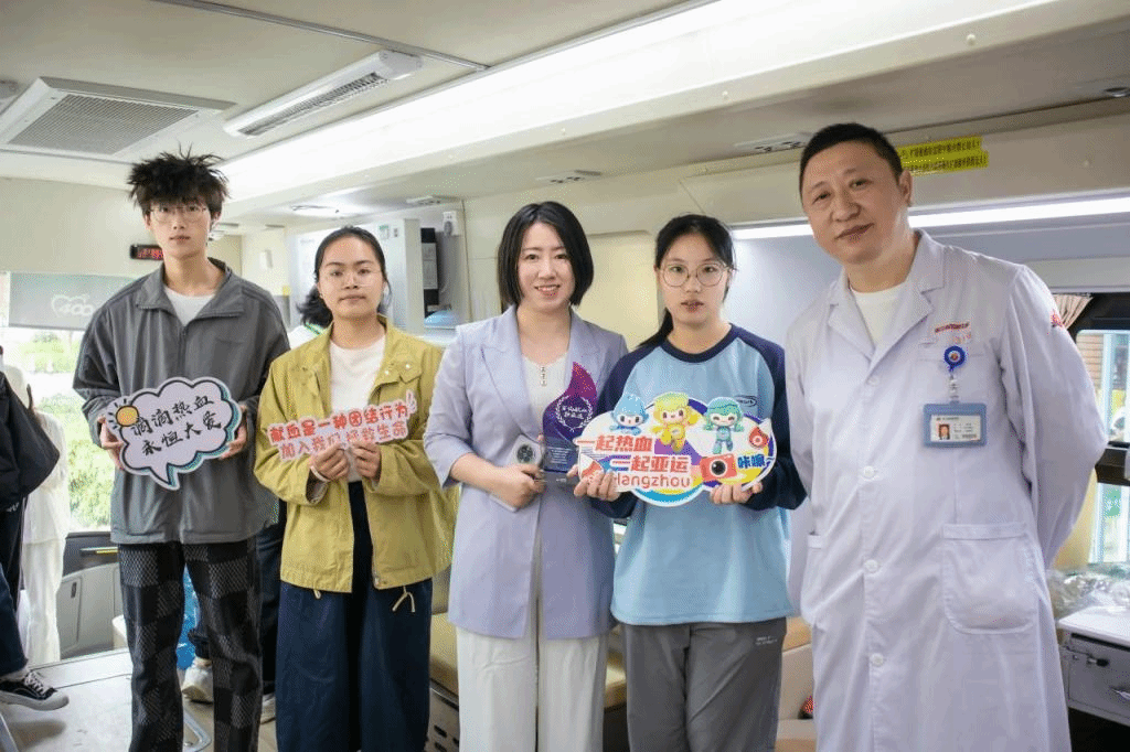 10月14日,臨安區(qū)衛(wèi)健局副局長許向軍來到“攜青年之手,筑血脈之橋”無償獻(xiàn)血活動(dòng)現(xiàn)場,對(duì)正在獻(xiàn)血的師生志愿者、工作人員表示關(guān)懷慰問,并向校團(tuán)委授予“百場獻(xiàn)血護(hù)亞運(yùn)”紀(jì)念牌。