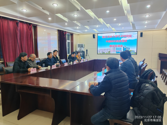 在中國(guó)林科院,資源信息研究所所長(zhǎng)、浙江農(nóng)林大學(xué)校友王宏接待了方偉一行并舉行座談。雙方圍繞“以竹代塑”、國(guó)家儲(chǔ)備林、林業(yè)遙感與信息化等方面展開了座談,一致認(rèn)為在人才隊(duì)伍建設(shè)、項(xiàng)目合作等方面要加強(qiáng)交流與協(xié)作,為竹產(chǎn)業(yè)發(fā)展貢獻(xiàn)智慧力量。