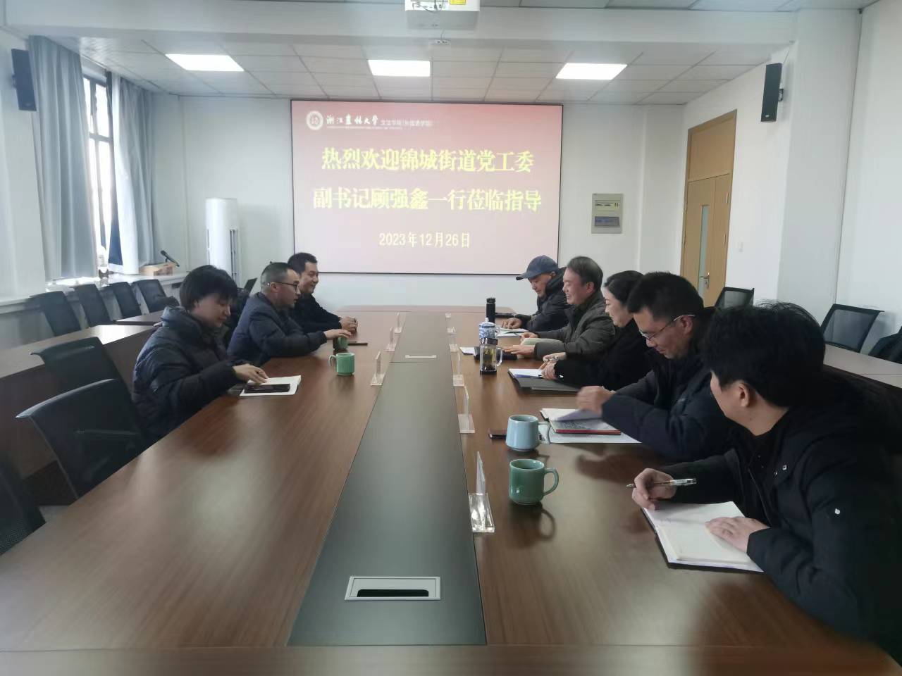 12月26日,臨安區錦城街道黨工委副書記顧強鑫一行到文法學院對接黨建聯建。文法學院黨委書記朱紅東等學院領導及有關教師代表參加交流。