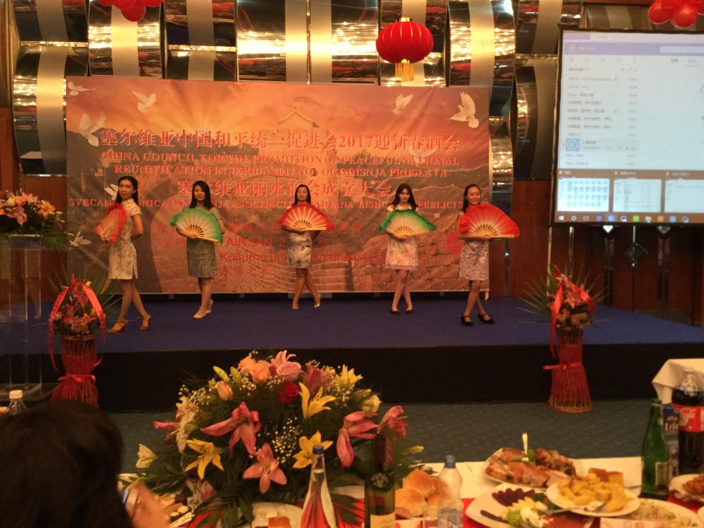 當(dāng)?shù)貢r(shí)間2017年1月10日,塞爾維亞中國(guó)和平統(tǒng)一促進(jìn)會(huì)迎新春酒會(huì)暨塞爾維亞麗水商會(huì)成立大會(huì)在貝爾格萊德舉辦。塞爾維亞總統(tǒng)顧問(wèn)Jovan Roganovic、 國(guó)家資產(chǎn)管理局局長(zhǎng)Jovan Vorkapic、中國(guó)駐塞爾維亞大使館代辦盧山等中塞嘉賓共三百多人參加了該活動(dòng)。期間,諾維薩德大學(xué)孔子學(xué)院成功助力推廣多彩的中國(guó)文化,深受大家的贊譽(yù)。