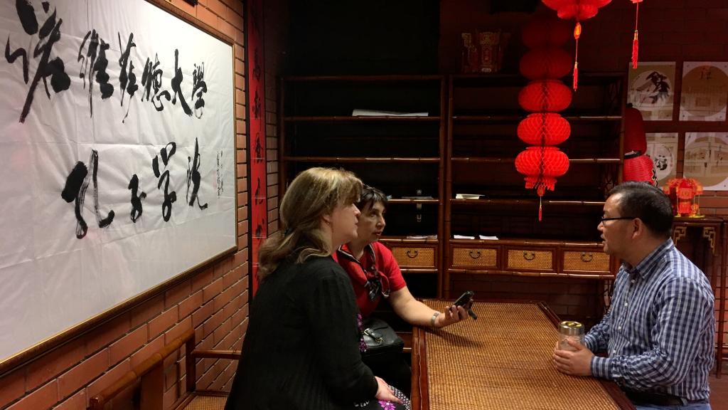 記者艾瑪·戈拉亞蘭(Ema Grajlan)來到孔院的時候,正值學生們在學習中國書畫課。有一群學生來自匈牙利,她們在諾大孔院學了近三年的的中國畫,被中國畫的“寫意”和“工筆”深深吸引;志愿者老師采用“詩詞與繪畫”相結合的教學法,讓學生們在繪畫中體會了中國詩詞之美。學生蔻瓦茲·哈亞娜卡(Kovac Hajnalka)在接受采訪時暢談了她對中國畫的喜愛。